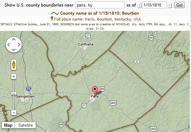 “I took a look at the maps on Randy Major’s site in an attempt to better figure out the boundary changes between Bourbon and Nicholas Counties that are alluded to in a 1819 era deed of my ancestor, Augusta Newman.